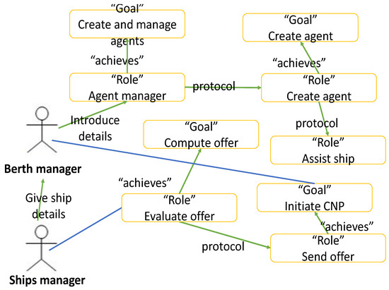 The official AgentTools website [30] defines this diagram as a representer of all the organization roles with other goals and with the communication protocols from the organization. The models of roles are therefore static and can include actors, roles, goals, possibilities, services, and protocols; and relationships between the entities include ‘require’, ‘provide’ or ‘inheritance’. Figure 7 illustrates our role model (protocols between roles are not specified so as not to clutter the diagram).