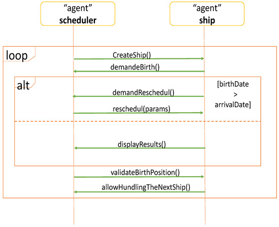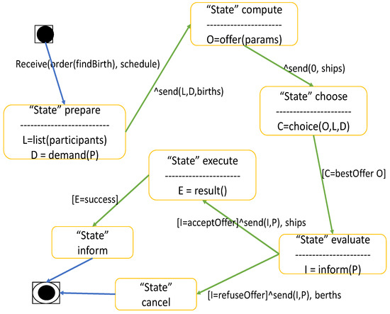 Protocol model between the “scheduling agent” and the “ship agent”.