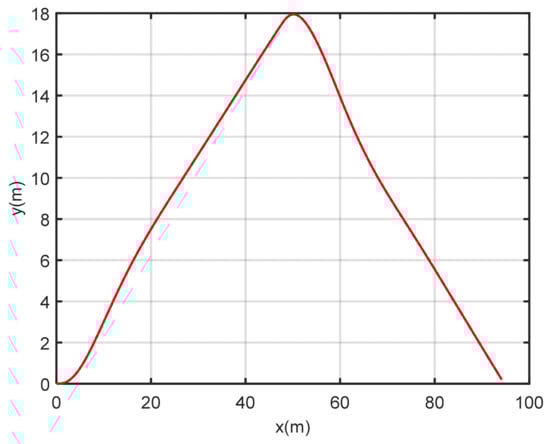 Finally, Figure 7 shows the nonlinear system’s heading angle following an alternating step input reference signal once it has been controlled by the final iterated control. Clearly, this is a valid approach to control the vehicle’s trajectory as is shown in Figure 8, where two maneuvers of straight course-keeping are shown.