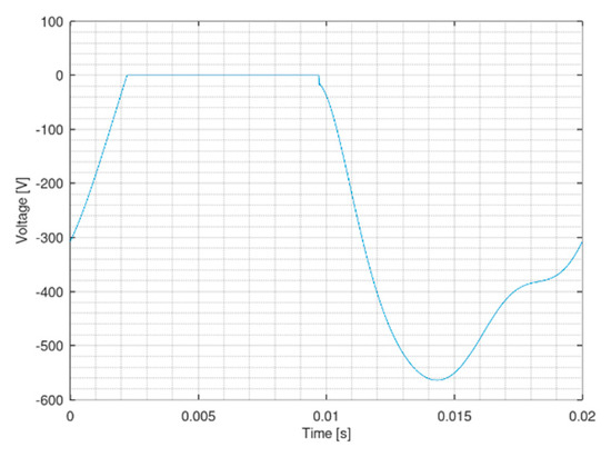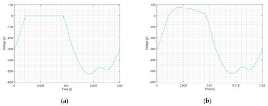 Figure 16 shows the superimposed time evolution of the voltage across the nonlinear load for the two cases presented in Section 5.1 and Section 5.2.