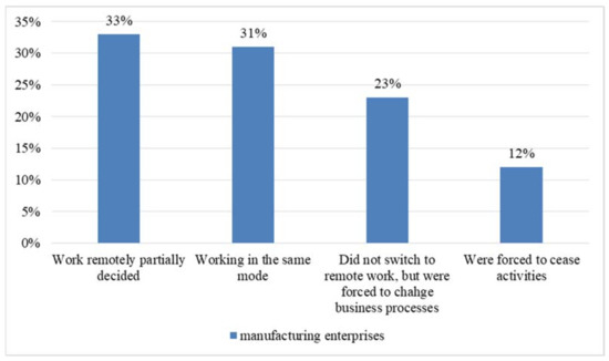The COVID-19 pandemic has affected most of the industrial enterprises of the Republic of Mordovia. The consequences of influencing the workflow are discussed in Figure 6.