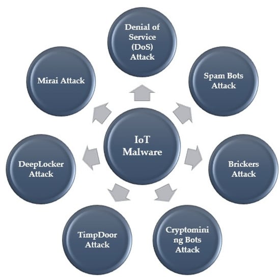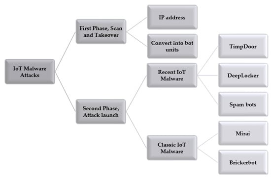 - Perry, J.S. Anatomy of an IoT Malware Attack IBM. 2019. Available online: https://developer.ibm.com/articles/iot-anatomy-iot-malware-attack/ (accessed on 6 July 2021).