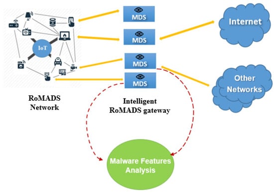 In IoT systems, the objects contact and interact with each other in a permanent and continuous way. The percentage of their exposure to any penetration is very high in comparison with the traditional networks. So, a continuous monitoring of the data traffics and devices is required. Therefore, using an MDS has an effective role in detecting strange malware behavior before causing any damage to the system. To improve the effectiveness of the IoT system, there is need to think of saving energy and time [1]. In traditional networks, the connection is between a server and a client, so high-security levels can be provided by adding a firewall and protection programs to the server. But in IoT network, every object is connected to each other; therefore, the penetration of one device may cause the compromise of the entire IoT system, hence the necessity of using MADS in IoT system. The IoT security field needs more research and studies to ensure a high degree of security and to gain the confidence of people to live in a smart society with a high degree of security and privacy [1]. According to Kaspersky statistics [4], most of the violations in the IoT environment are caused by malware. It is a malicious software or program that is designed to penetrate different devices, systems, and networks, for specific purposes, either to sabotage, or damage networks or devices, or make money in an illegal way. It performs various functions such as encrypting, deleting sensitive data, stealing data and information, spying, or disrupting systems [5,6].