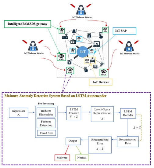 RoMADS framework includes IoT architecture, IoT network, IoT devices, and the MDS based on LSTM Autoencoder. The main goal of RoMADS framework is to contribute in improving security in IoT environments and overcoming malware attacks. Our Contributions in this paper are as follows: