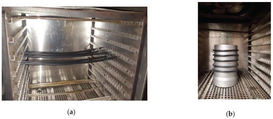 Cable samples in the oven for (a) thermal aging; (b) thermo-mechanical aging.
