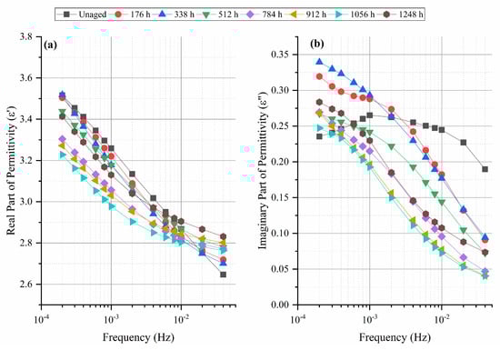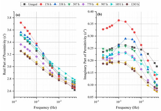 (a) Real and (b) imaginary parts of permittivities for thermal aging.