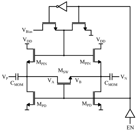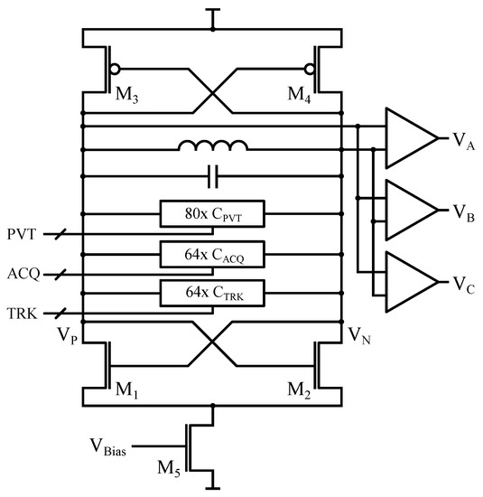 - Hershberg, B.; Raczkowski, K.; Vaesen, K.; Craninckx, J. A 9.1–12.7 GHz VCO in 28nm CMOS with a bottom-pinning bias technique for digital varactor stress reduction. In Proceedings of the ESSCIRC 2014—40th European Solid State Circuits Conference (ESSCIRC), Venice Lido, Italy, 22–26 September 2014; pp. 83–86. [Google Scholar] [CrossRef]