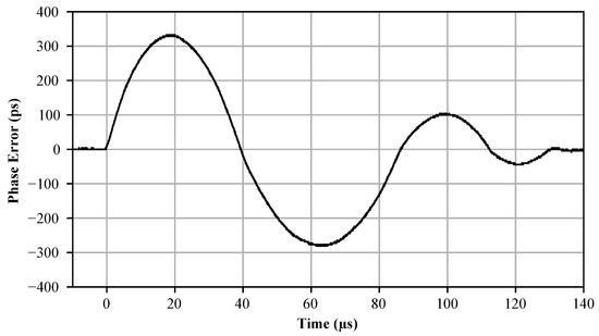 Example SEE phase transient stimulated by high LET (62.5 MeV cm2 mg−1) ions. The parabolic phase response characteristic for Bang-Bang PLLs is observed. The loop transitions back to the random noise regime after 130 s.