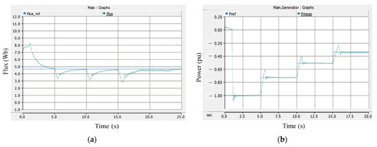 (a) Flux control; (b) power control at 0.7 pu rotor speed.
