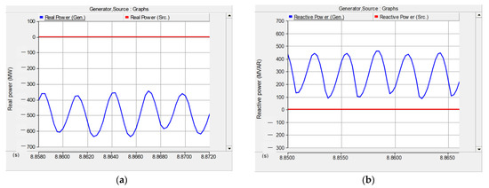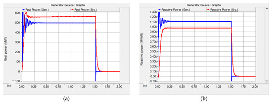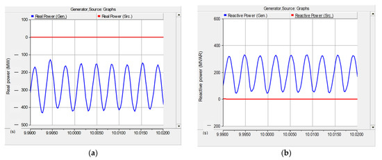 This section shows the simulation graphs for the first case. Figure 23 shows the real and reactive powers delivered from the SEIG and source. It can be seen from the real power graph that the SEIG fully supplies real and reactive powers to the electrolyzer circuit when the source is disconnected from the system as a result of the breaker action at 1.5 s, and the source power becomes zero.