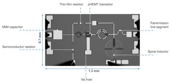 MMIC consists of different elements: active (transistor, diode) and passive ones (resistor, capacitor, inductor, transmission line, contact pad, via hole, and others); see Figure 2.