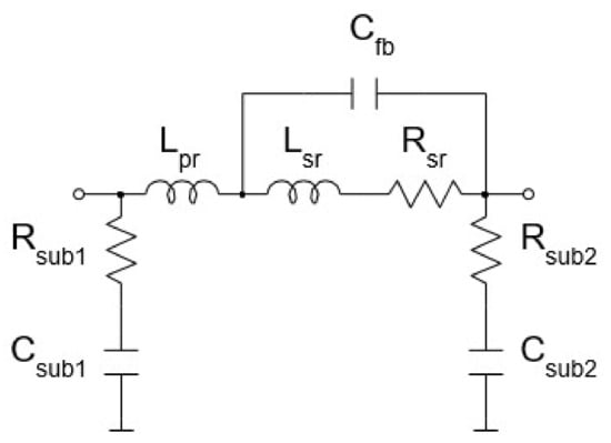 Equivalent circuit models were constructed for the passive elements, e.g., a spiral inductor equivalent circuit shown in Figure 7.