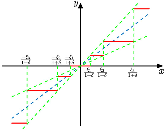 where the notation depicts the floor function and is a known constant that determines the quantization dense. The figure of the uniform quantizer (5) is shown in Figure 2. The quantization error of (5) satisfies