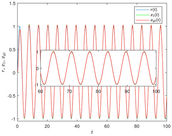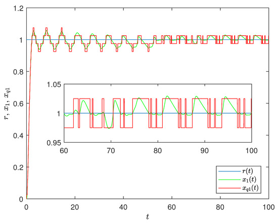 As mentioned above, the ARC method in [8] aims at the strict-feedback system with full state feedback, and it is not suitable for quantized state feedback. The proposed approach is based on the adaptive robust control method and can be regarded as an extension of the ARC method. Ignoring the state quantization, the designed controller (24) degrades into the ARC law proposed in [8], in which the bounds that the states of the system converge to and the convergence rate are determined by the control parameters and ; the converge rates of the parameter estimators are determined by the adaptive parameter matrix γ. Moreover, , i.e., the Lyapunov function becomes the traditional form in [5,8].