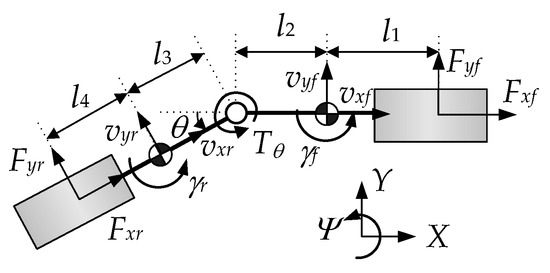 - Lei, T.; Wang, J.; Yao, Z. Modelling and stability analysis of articulated vehicles. Appl. Sci. 2021, 11, 3663. [Google Scholar] [CrossRef]
