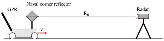 Figure 1 shows a sketch of the proposed system. The GPR is moving with a speed v toward the interferometric radar. Generally speaking, a radar is affected by the Doppler effect, and it may not be able to retrieve the correct GPR position just by detecting the position of the peak in range [10,11].