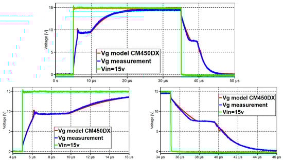 Simulated and measured gate voltages for the Mitsubishi Electric CM450DX-24S module.