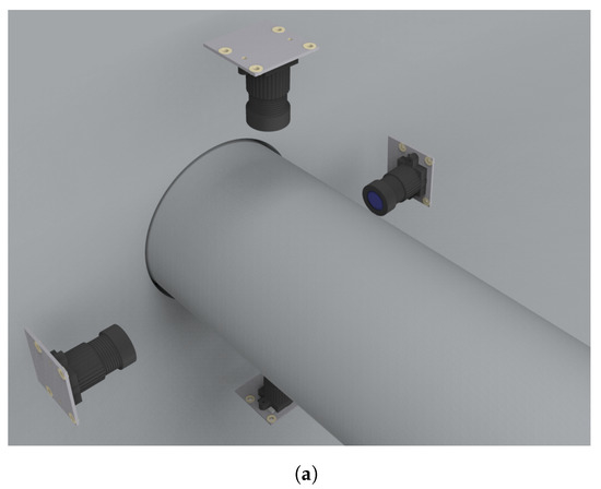 To estimate of the camera distances to have a view, we took advantage of the cylindrical nature of the junction. The rendered images have been generated with a field of view of . In the hypothesis of positioning the cameras with view centered perpendicularly to the shaft surface, the condition for a with camera with field of view of to have a view of the shaft is to be at a distance from the shaft radius of (with r the shaft radius).