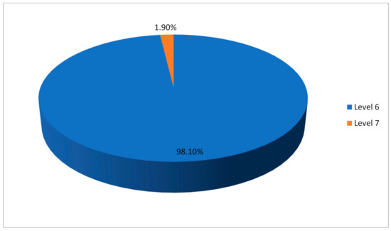 The following, Table 3, illustrates that the percentage of participants in the sample at university level 6 was 98.1%, and the percentage of sampled participants at university level 7 was 1.9%. This level is the final level before graduation. Figure 4 below illustrates Percentages for university level.