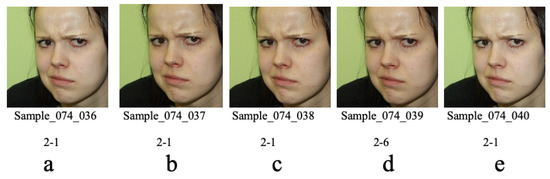The dataset includes 31,250 facial images with different emotions of 125 subjects, each subject acting out 50 different emotions. Note that five images were taken with a camera for each emotion of a subject. These five images of each emotion can be captured in a continuous way as shown in Figure 7.