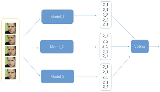 We used the ensembling method explained in Section 4.1.4 to vote on the final output predict outcomes after we obtained the results from the three models. The ensembling process of our approach is depicted in Figure 8.