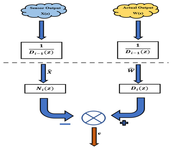 Equation (8) [26] is a highly nonlinear regression problem. Steiglitz-McBride’s iterative technique minimizes the mean square error using linear regression, as shown in Equation (9) [27]. The procedure for minimizing error is graphically illustrated in Figure 2.