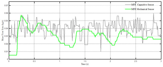 Similarly, the actual MFR, , modeled as mechanical sensor MFR output, , is shown in Figure 20, and the relationship between them is given by Equation (20):