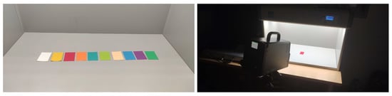In order to check if we have developed a system with a high degree of fidelity in color reproduction or not, we used 10 samples from the NCS (Natural Color System) atlas book. NCS was developed after 15 years of scientific research with the aim of creating a standard in color specification in the Swedish industry. However, it has already spread worldwide as an universal color language, and is a national standard in countries as diverse as Sweden, Mexico, South Africa, and Spain. Today it is a widely used system both at industrial and professional or private level, from the process of product design in large companies or branding, to the choice of color for projects by individuals, designers, architects, interior designers, etc. It is also supported by color tools of the best quality and repeatability year after year, with which to choose the color through a physical sample [,].