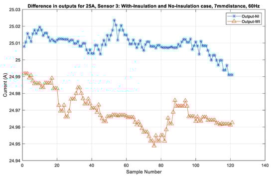 Sensor S3 output for 25 A: With-Insulation and No-Insulation case.