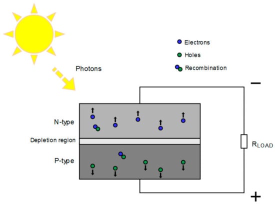 The conversion of solar energy into electricity is the called photovoltaic effect. This was discovered in 1839 by the French physicist Edmond Bequerel [26]. When a solar cell is under sunlight, the absorbed amount of light is transformed into electricity, while the remaining sunlight can be reflected or passed through [27]. Solar cells are normally connected in parallel and series to increase the current and voltage to the required values for a given load.