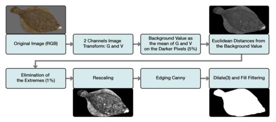 - Jeong, S.J.; Yang, Y.S.; Lee, K.H.; Kang, J.G.; Lee, D.G. Vision-based automatic system for non-contact measurement of morphometric characteristics of flatfish. J. Electr. Eng. Technol. 2018, 8, 1194–1201. [Google Scholar] [CrossRef] [Green Version]