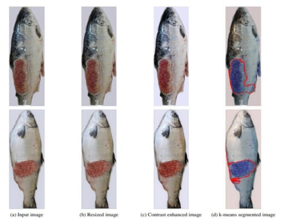 - Chakravorty, H.; Paul, R.; Das, P. Image processing technique to detect fish disease. Int. J. Comput. Sci. Secur. (IJCSS) 2015, 9, 121–131. [Google Scholar]