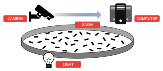 In addition, Gerami et al. [88] assess the weight of salmon fish using machine vision. The fish samples were collected from a fish farm in Iran. There are 75 live specimens of rainbow trout (Oncorhynchus mykiss). A digital Cannon IXUS 960IS (12 mega pixels; 3000 × 4000) in the red, green and blue channels was used to take photo from left side of samples. The camera was located above the sample at a height of 45 cm. All taken fish photos can be transmitted to computer and analyzed by MATLAB (Matrix laboratory) version R2009x (Figure 14) [88].