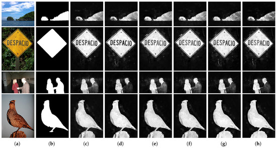 - Achanta, R.; Hemami, S.; Estrada, F.; Susstrunk, S. Frequency-tuned salient region detection. In Proceedings of the 2009 IEEE Conference on Computer Vision and Pattern Recognition, Miami, FL, USA, 20–25 June 2009; pp. 1597–1604. [Google Scholar]