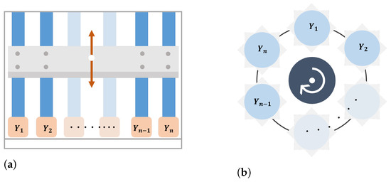 Schematics of multi-actuator-driven gantry. (a) Linear motion system. (b) Rotational motion system.