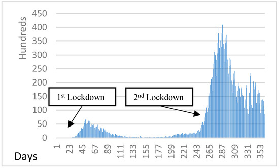 As presented in Figure 12, the initial stay-at-home orders (enforced and referred to as ‘lockdown’) for Italy’s general population began on 10 March and finished on 4 May. The second lockdown, largo, started on 26 October and was partially completed, as most restrictions were still being implemented on 4 November. Therefore, as the second pandemic wave occurred, there was an increasing trend in new cases. For this reason, if we had early lockdown strategy and if the quarantine measures had been adopted earlier, we would have avoided the unpleasant increment situation of the second wave.