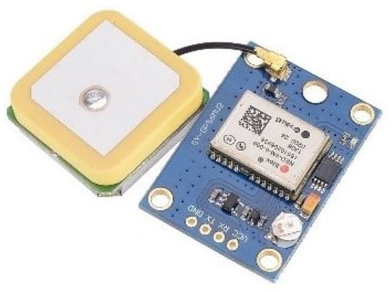 The GY-GPS6MV2 is a global positioning system receiver device that consists of an NEO-6M crumb combined on an electric board. It consists of batteries and an LED light. The light is turned on when it sends or receives GPS data to/from satellites. This sensor module also provides a sensitivity of around −161 dBm. Table 5 shows the GY-GPS6MV2 specifications. Figure 8 shows the GPS sensor.