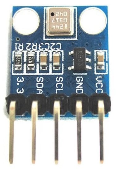BMP180 provides altitude and pressure values of a specified location with low battery consumption. It is small in size and provides high accuracy. This module is factory calibrated, which makes it more accurate than other altitude measurement sensors. Table 6 shows the specifications of this altitude measurement sensor. Figure 9 shows the hardware of the pressure sensor.