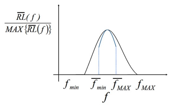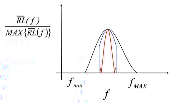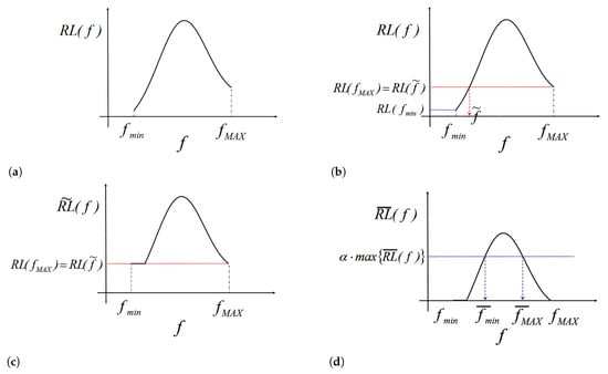- Set up a threshold for in order to identify the two values and such that (Figure 1d):thus obtaining the narrower frequency observation interval .