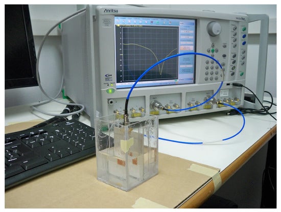 The function into Equation (1) represents the reflection coefficient at the microwave sensor input. An interesting aspect to be remarked is that here we are going to work with values expressed in for the magnitude of the reflection coefficients (regardless of the presence of the minus sign in the definition), and thence the computation of the Fourier transform of the return loss is as equivalent to a “sort” of complex cepstrum [16] of the inverse Fourier transformation of .