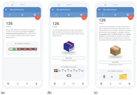 - Nuijten, R.C.; Van Gorp, P.M. Supplementary Material: Health Promotion through Monetary Incentives: Evaluating the Impact of Different Reinforcement Schedules on Engagement Levels with a mHealth App. 2021. Available online: https://figshare.com/articles/dataset/Supplementary_material_Health_promotion_through_monetary_incentives_Evaluating_the_impact_of_different_reinforcement_schedules_on_engagement_levels_with_an_mHealth_app/16692271 (accessed on 19 September 2021).