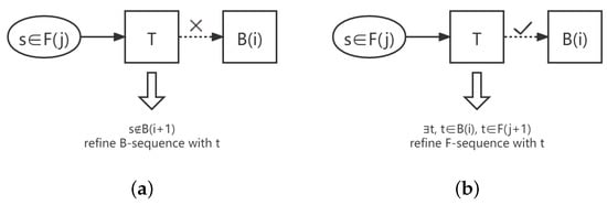 The schema to refine elements in the B- and F-sequences. This figure is better viewed online. (a) The schema to update elements in the B-sequence. (b) The schema to refine elements in the F-sequence.