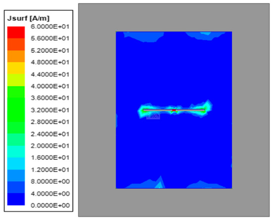 Simulated surface current density on the antenna’s radiating patch at 2.4 GHz.
