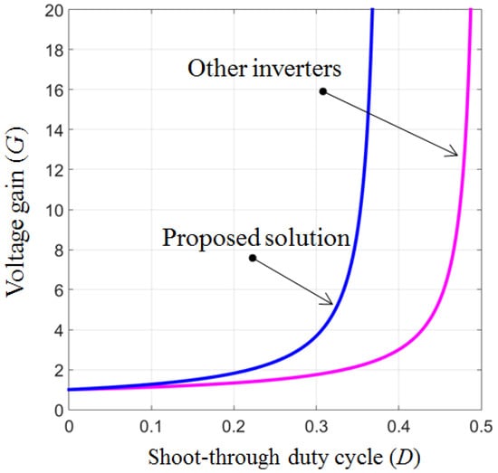 Table 3 presents the comparison between other Z-source inverter with CMV reduction and the MAqZSI with the proposed SVM method. Regarding the component count, the proposed inverter uses more components in the impedance-source network when compared with the ZS/qZS topologies in [26,27,28,29]. When compared with the modified qSBI [29], the proposed inverter uses one less switch and has lower voltage stress on components, as presented in [18,19]. As shown in Table 3, the ZSI [26] and qZSI [28] can offer the constant CMV. However, the modulation index of these inverters is low. This leads to reduce the output voltage quality and increase the voltage stress on components. The CMV of the modified ZSI [27] and qSBI [29] is equal one-third of the DC-link voltage. Moreover, these inverters can operate in high modulation index. As shown in Figure 8, the proposed inverter has the highest voltage boosting capability. Thus, the proposed inverter can use higher modulation index to improve the output voltage quality.