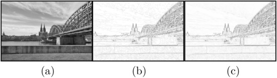 Different image processing algorithms have been proposed in the literature where SC has been demonstrated to perform better than traditional computing with an imperceptible error increase [39,40]. One of them is the Roberts’ cross algorithm for edge detection. The algorithm computes the input image in a 2 × 2 moving pixel window by the following formula: