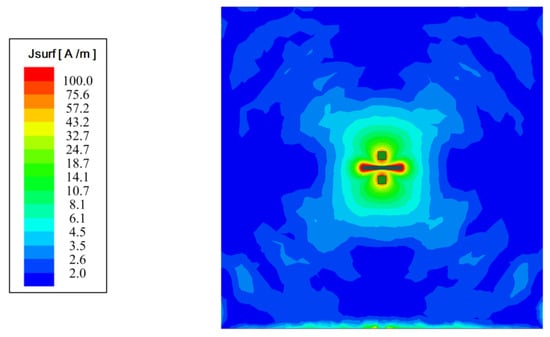 Figure 6 show the surface currents distribution on the ground plane. The currents are concentrated at the two ends of the slots and around the two monopoles. The square contour of the current intensity can be observed at the center area. The current distribution further indicates that an equivalent ME dipole has been constructed.