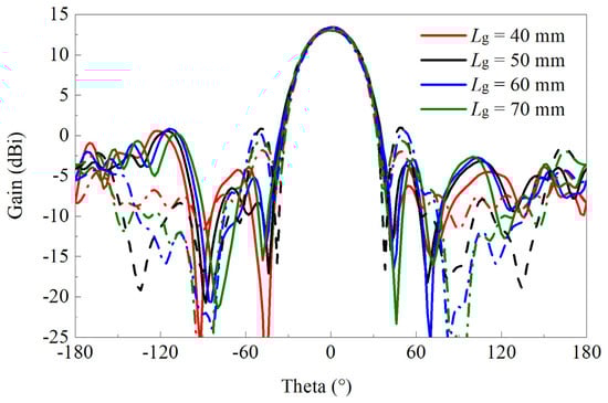 The patch array is responsible for the lower band. The typical gain of a 2 × 2 patch array is roughly 13 dBi. Higher gain can be obtained by using a 3 × 3 or 4 × 4 patch array. The dielectric rod is responsible for the upper band. As we know, the typical gain of dielectric rod varies from 10 dBi to 20 dBi. The gain increases with the increase of the rod’s length. It provides a simple but flexible way to change the beamwidth. That is why a dielectric rod radiator is adopted in the proposed design.