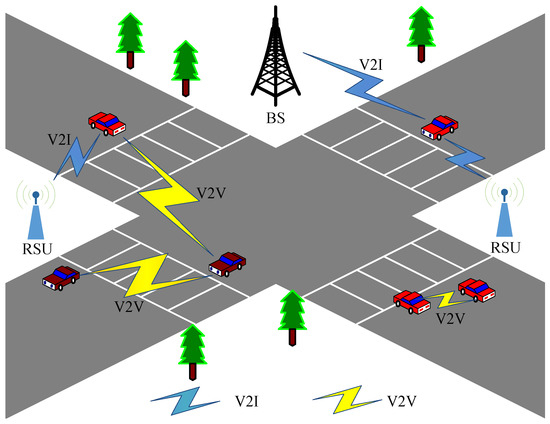 In these processes, the specific communication performance is omitted when the task offloading is focused on algorithm or scheme design for practical networks, such as vehicular networks. Relying on actual scenarios to verify the proposed scheme, more sophisticated simulation techniques are needed to simulate a network traffic and a road traffic [32,33,34]. In order to develop more efficient Inter-Vehicle Communication (IVC) protocols [32], Veins is mainly used for evaluating the performance of vehicular ad hoc networks. Veins provides comprehensive IVC models, which can be used for simulation frameworks to simulate practice application scenarios. Reference [33] develops a simulation framework OMNeT++ which is a simulation environment to model realistic communication patterns of vehicles nodes. Additionally, the microscopic road traffic simulation package SUMO can simulate traffic simulation [34]. In this paper, we use Veins, combining with OMNeT++ and SUMO, as our simulation framework where road-side units (RSUs) receive message vehicles transfer by IVC protocols to evaluate the performance of proposed task offloading scheme.