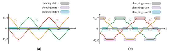 In conclusion, in order to realize the clamping state in Figure 5, zero-sequence voltage vZ2 needs to be injected into the reference voltage v′x. vZ2 can be expressed as: