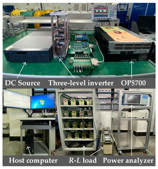 In order to verify the feasibility and effectiveness of the proposed DPWM strategy, the rapid control prototype OP5700 (OPAL-RT Co. Ltd.,Richardson, Canada) and the NPC three-level power model PEN8018 (Imperix Co. Ltd., Sion, Switzerland) are adopted to establish the experimental setup, as shown in Figure 11.
